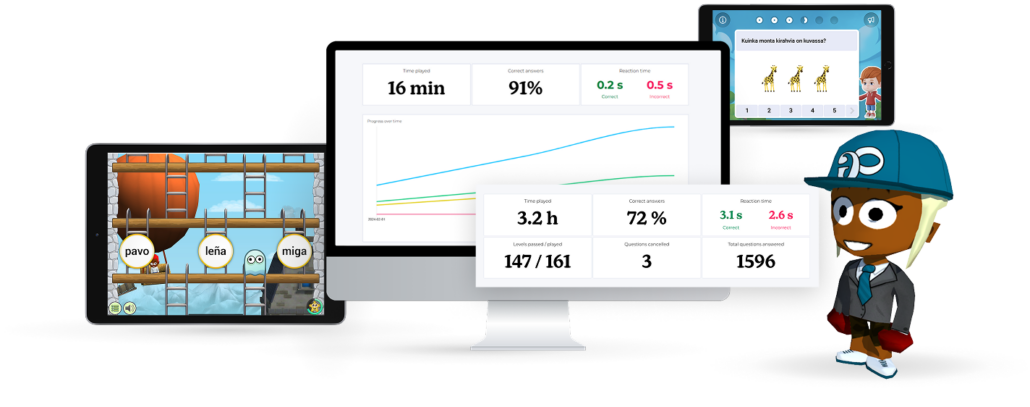 To complement the game, we offer a data service for schools that allows teachers to monitor students’ progress in real-time. This real-time tracking enables educators to make timely interventions and offer targeted support. We have also developed predictive models that help identify reading difficulties at an early stage.